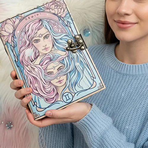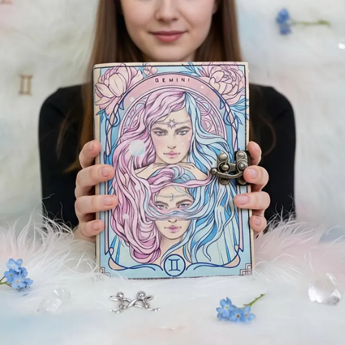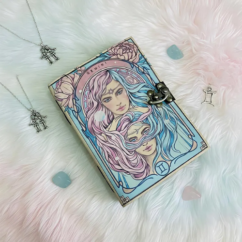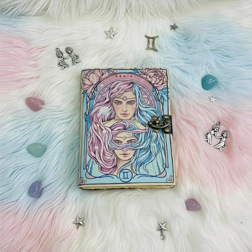 Gemini Zodiac printed Leather Journal Astrology Grimoire hardcover