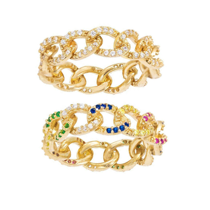 แหวนเงินแท้ 925 ดีไซน์แฟชั่นสำหรับงานแต่งงาน ประดับเพชร CZ สีรุ้งหลากสี พร้อมสายโซ่ทองแบบคิวบา