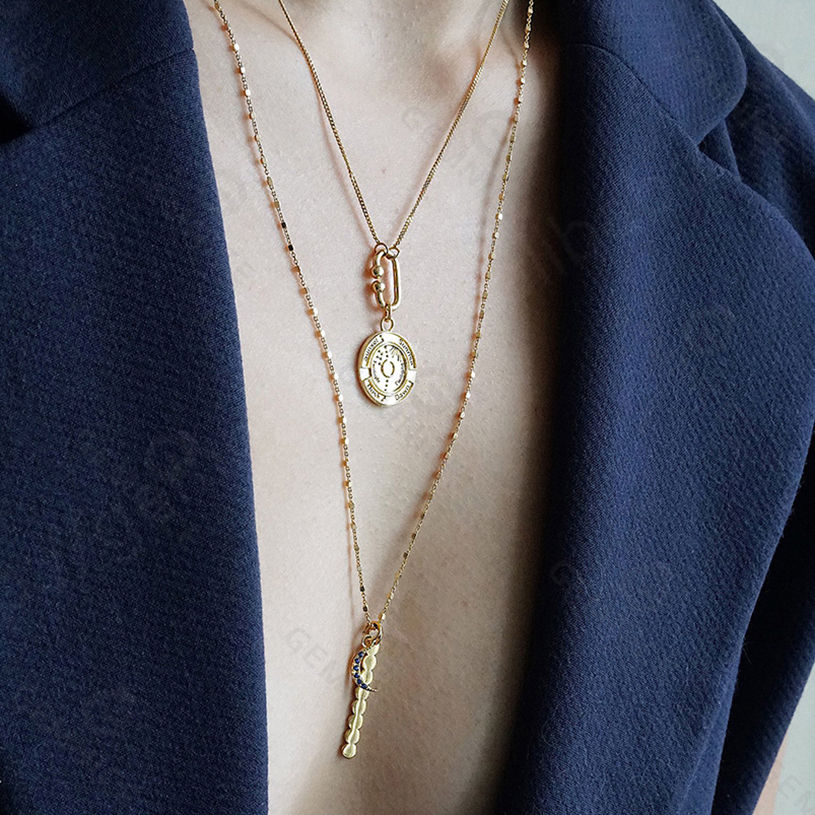 อัญมณีโบฮีเมียน925เงินสเตอร์ลิง14K เครื่องประดับทองสร้อยคอจี้เหรียญวินเทจที่สวยงาม