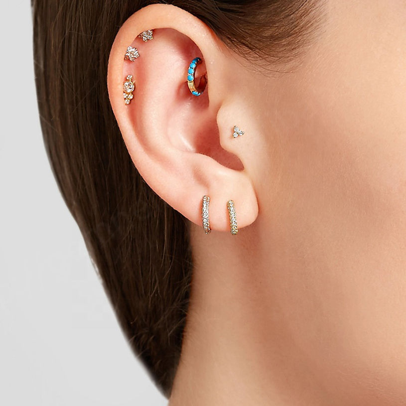 ต่างหูแบบห่วงทองคำแท้ Gemnel ประดับเทอร์ควอยซ์ สำหรับผู้หญิง ทำจากเงินแท้ 925