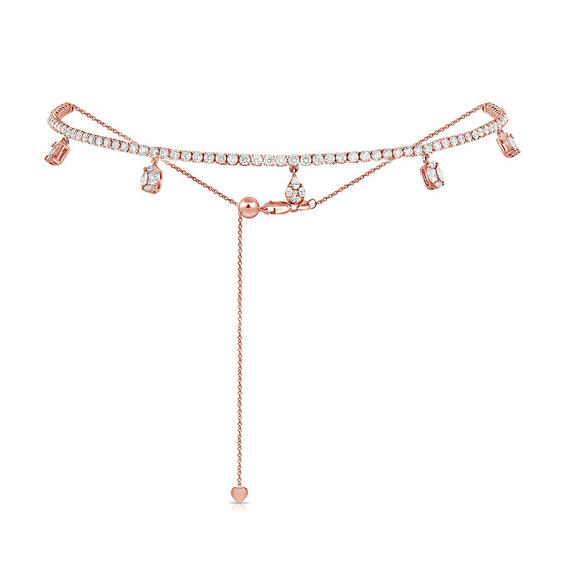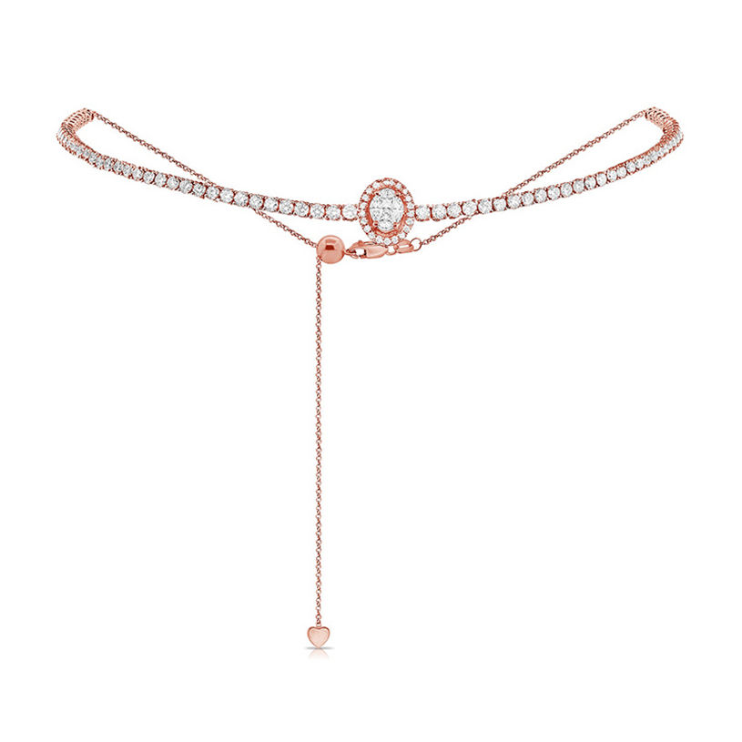 สร้อยโชคเกอร์ปรับได้ประดับเพชรอัญมณีเงินสเตอร์ลิง925