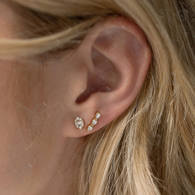 ชื่อผลิตภัณฑ์:ต่างหูเม็ดเพชรรูปลูกแพร์ชุบทอง14K สำหรับสวมใส่ประจำวันอัญมณี S925