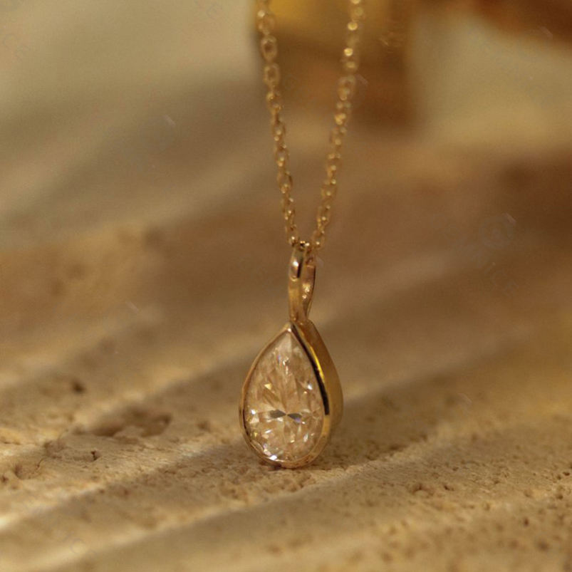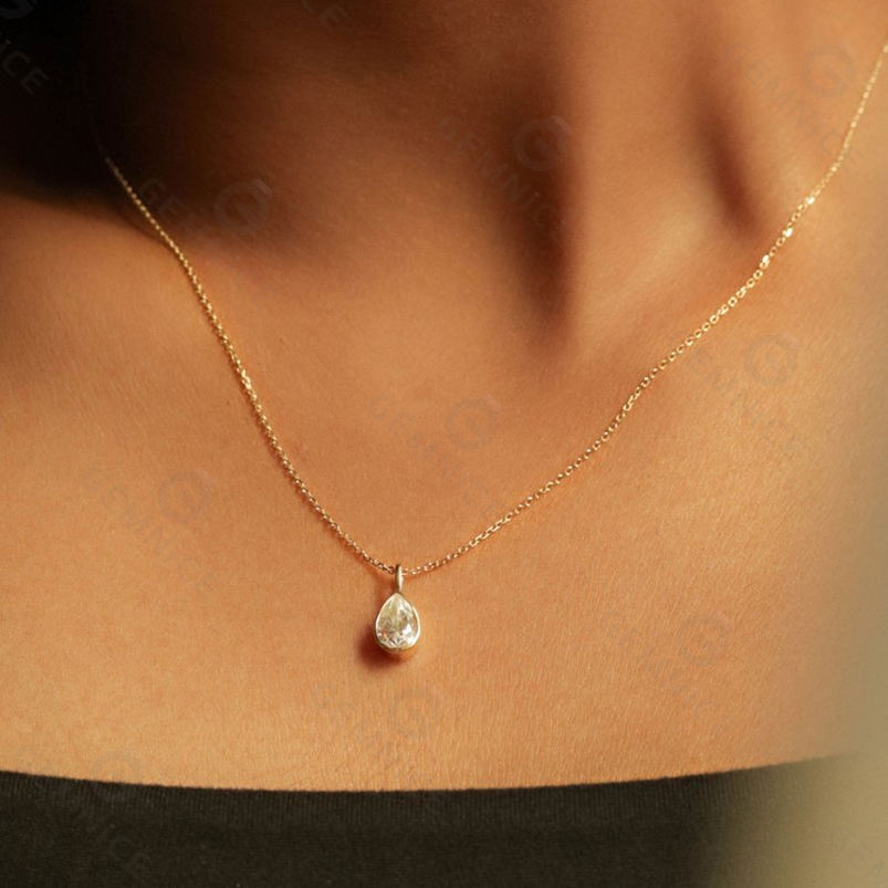 Gemnel Edge Teardrop Cut Moissanite Pendant 925 Silver Dazzling Solitaire Pear Shape Necklace Fine Jewelry