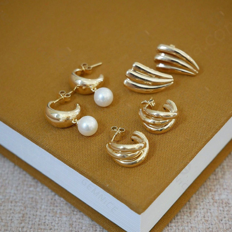 ชื่อผลิตภัณฑ์:ต่างหูเม็ดกลมรูปทรงเรขาคณิตสีเงินขนาดใหญ่สีทองขนาด925