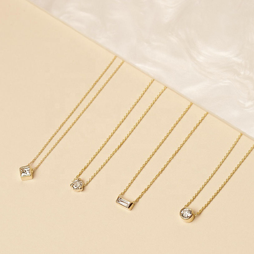 Gemnel Top Design Minimalist 925 Silver Gold Plated Diamond Solitaire Necklace