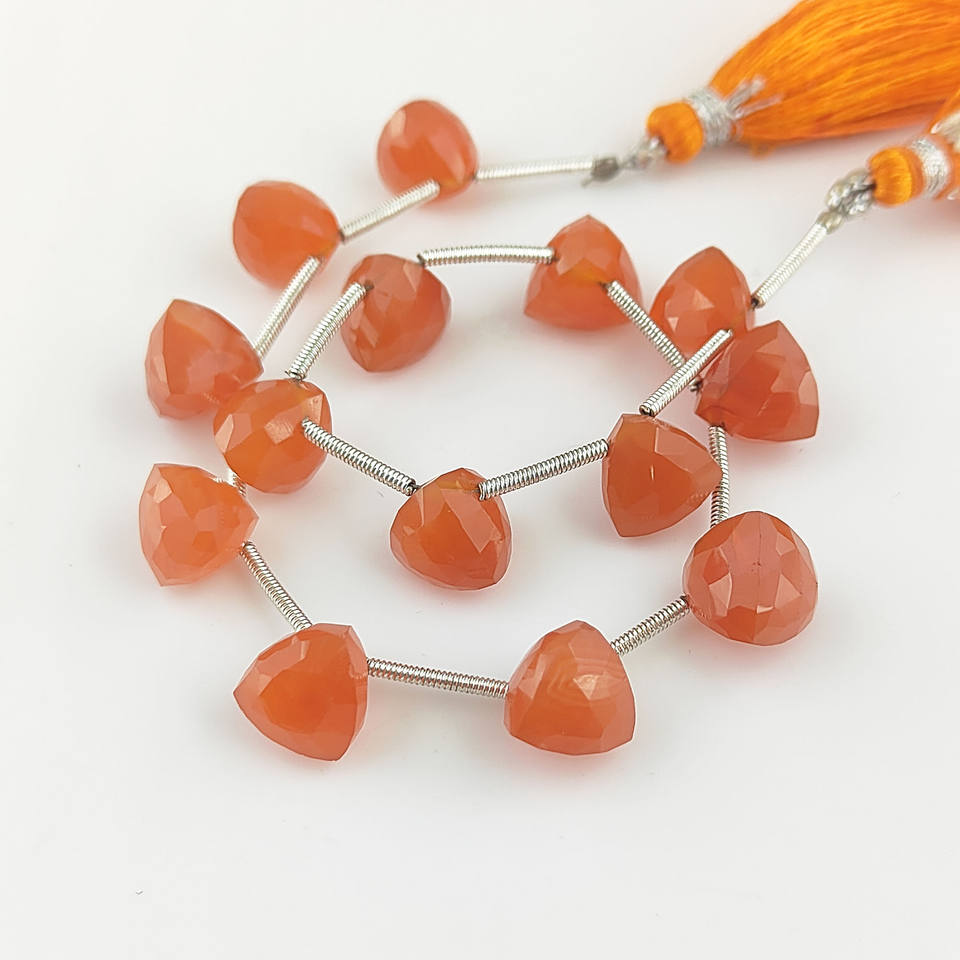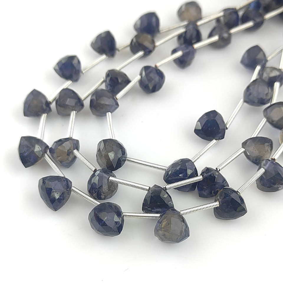 ลูกปัดพลอยทรงทริลเลียนเจียระไนขนาด 7-8 มม. พลอยธรรมชาติสำหรับทำเครื่องประดับ 13-14 เม็ดต่อเส้นยาว 8 นิ้ว