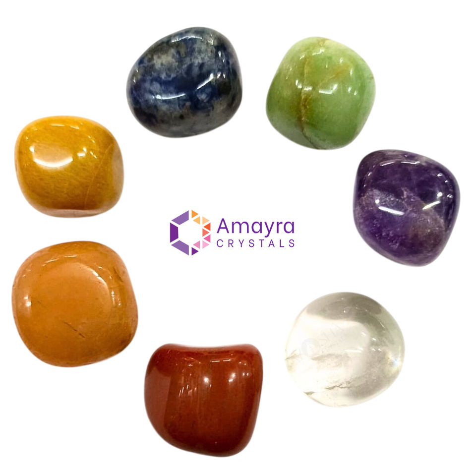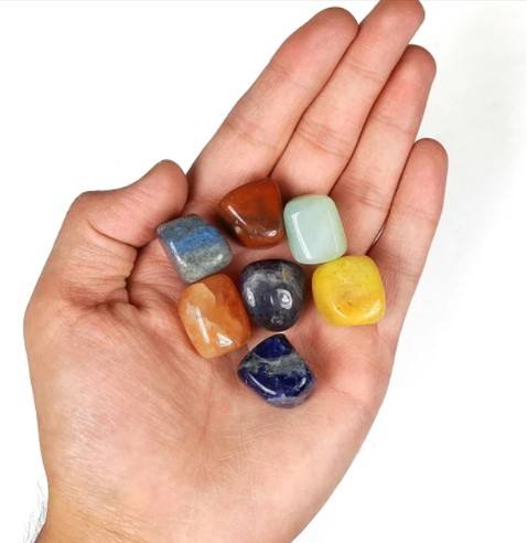 ชุดหินเจ็ดจักระแบบขัดเงา พร้อมถุงกำมะหยี่สั่งทำพิเศษ รูปทรงไม่สม่ำเสมอ กันน้ำ หินขนาดเล็ก ขายส่ง อินเดีย