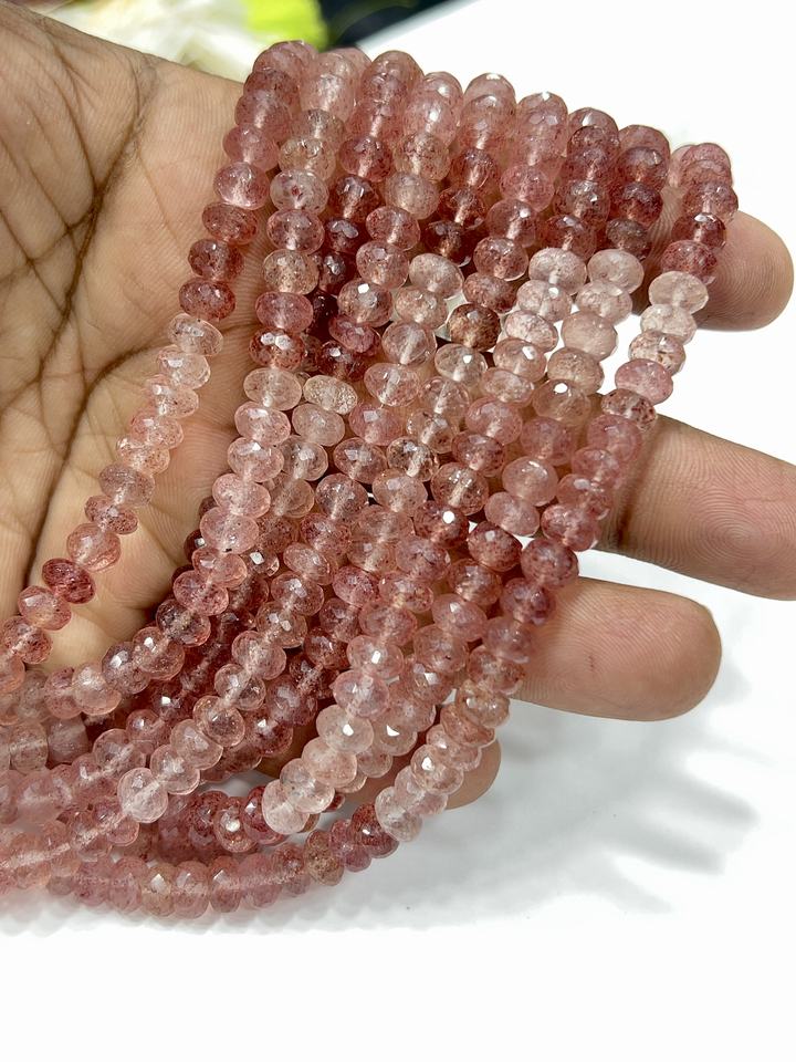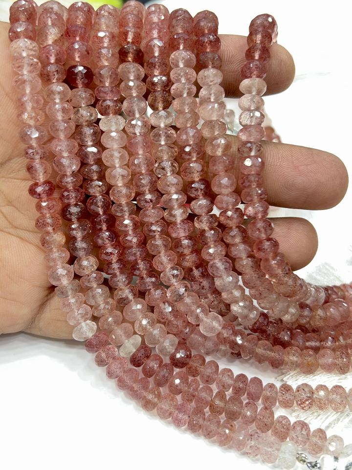 แหวนประดับลูกปัดพลอยธรรมชาติเกรด AAA สีชมพูสตรอเบอร์รี่ควอตซ์ทรงเหลี่ยมขนาด 8 มม. ความยาว 8 นิ้ว