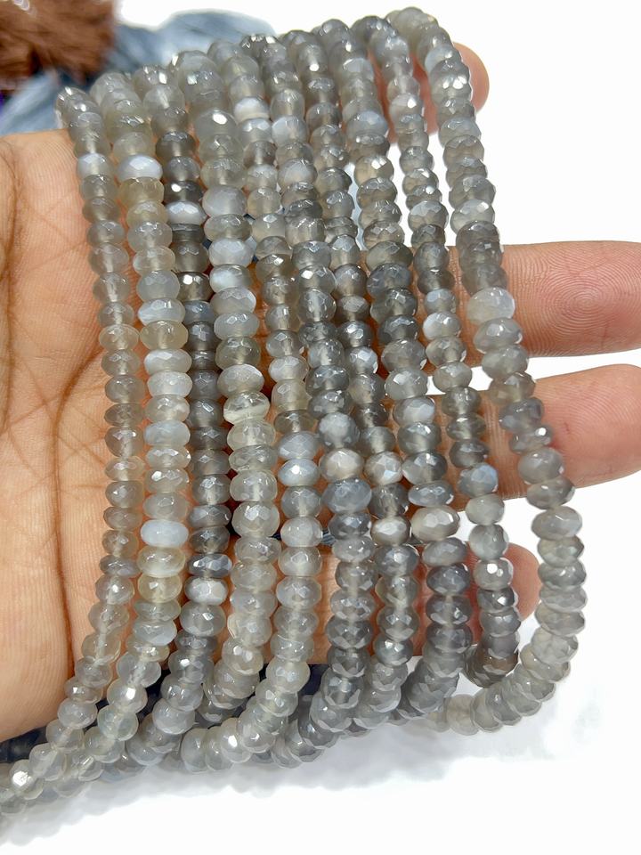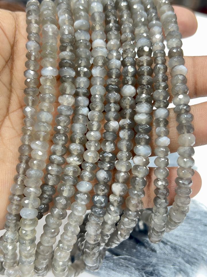 ลูกปัดพลอยสำหรับทำเครื่องประดับ พลอยมูนสโตนสีเทาธรรมชาติเกรด AAA ลูกปัดทรงรอนเดลเหลี่ยมเพชรพลอย ขนาด 8 มม. ความยาว 8 นิ้ว