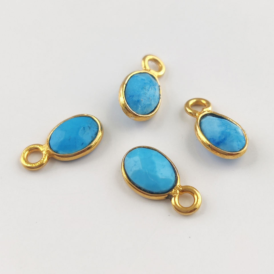 Gemstone Bezel Pendant 6x4mm Oval Briolette Gemstone 18K Gold Vermeil 925 Sterling Silver Bezel Pendant Charm Birthstone Charm