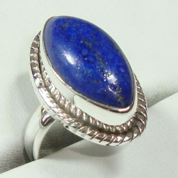 แหวนอัญมณีดีไซน์สีเงินทำมือสีเงินแบบชิ้นเดียวเครื่องประดับหิน Lapis Lazuli ขนาดใหญ่สำหรับผู้หญิง