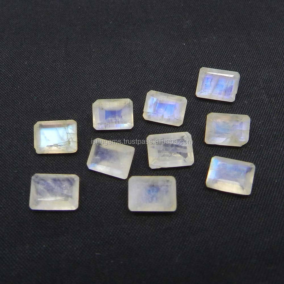 เครื่องตัดเลเซอร์สำหรับอัญมณี! มูนสโตนสีรุ้งธรรมชาติ กึ่งมีค่า ขนาด 8x6 มม. ทรงแปดเหลี่ยม น้ำหนัก 1.85 กะรัต แบบเม็ดเดี่ยว สำหรับทำเครื่องประดับ จาก Ishu Gems