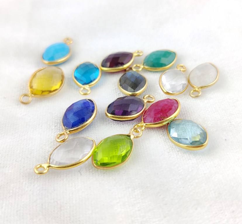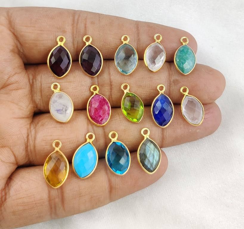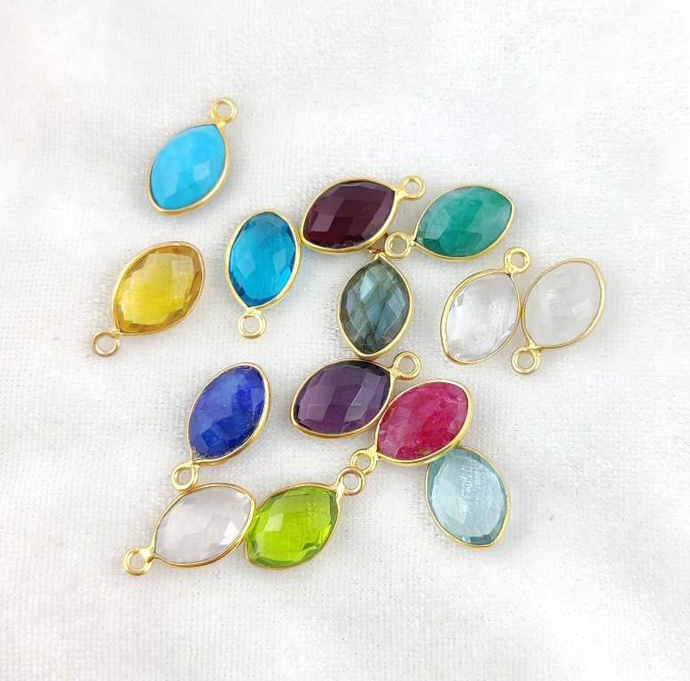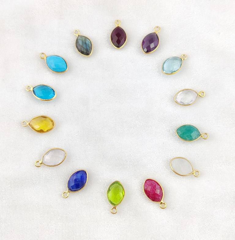 จี้เงินแท้ชุบทองคำขาวทรงมาร์คีส์ ประดับพลอยประจำเดือนเกิด สำหรับทำเครื่องประดับ สร้อยคอ