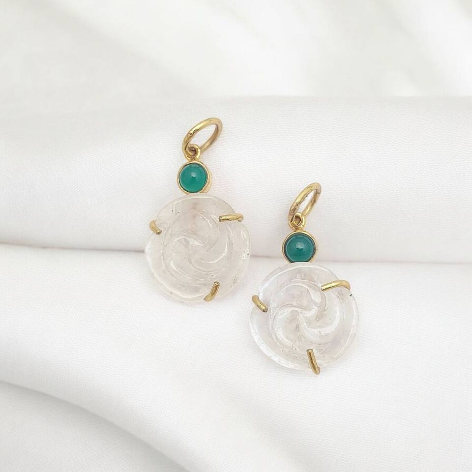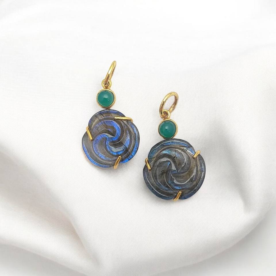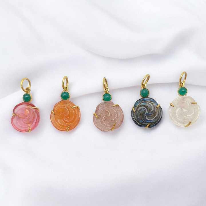 Gemstone Rose Carving Pendant 925 Silver Gold Plated Prong Set Handmade Pendant Birthstone Carving Charms Silver Jewelry Charm