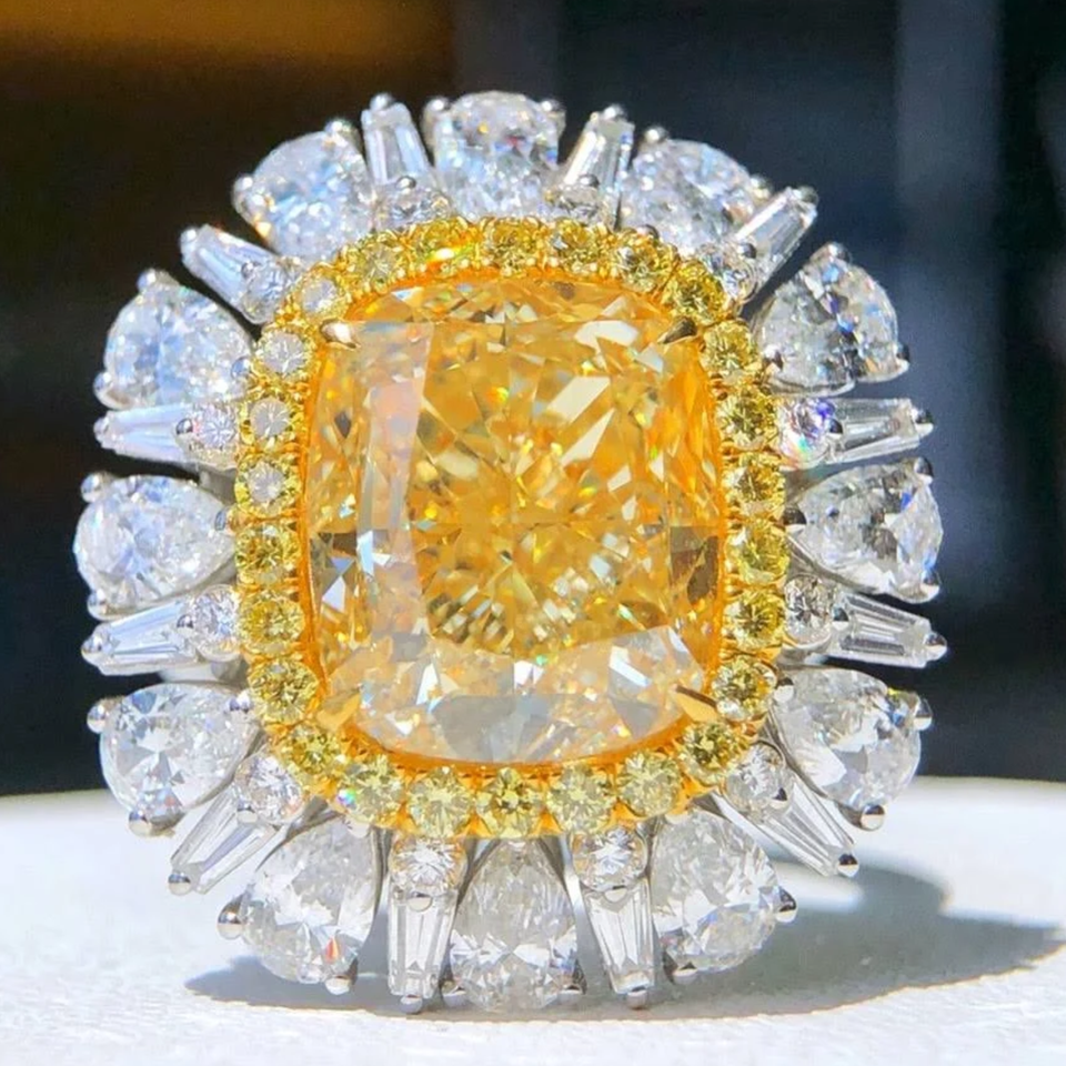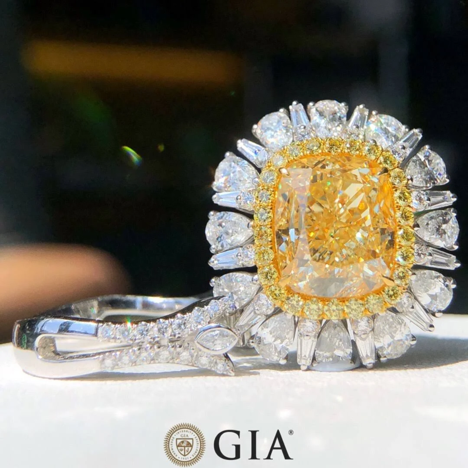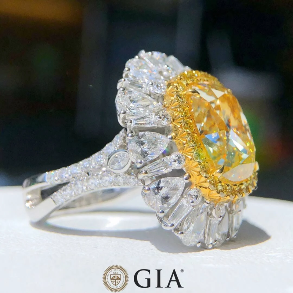 Gemver Center Stone แฟนซีสีเหลือง CVD Lab ปลูกเพชรหินด้านข้างเพชรสีขาว VS ความชัดเจน F สีแหวนเพชรที่ผ่านการรับรอง GIA