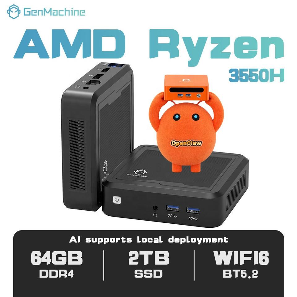 Genmachine AMD Mini PC Ryzen 5 3550H 4 core 8 threads Wifi5 BT4.2 HD 2 * USB3.0 2 * USB2.0 1G LAN 2สกรีน RAM DDR4โรงงาน