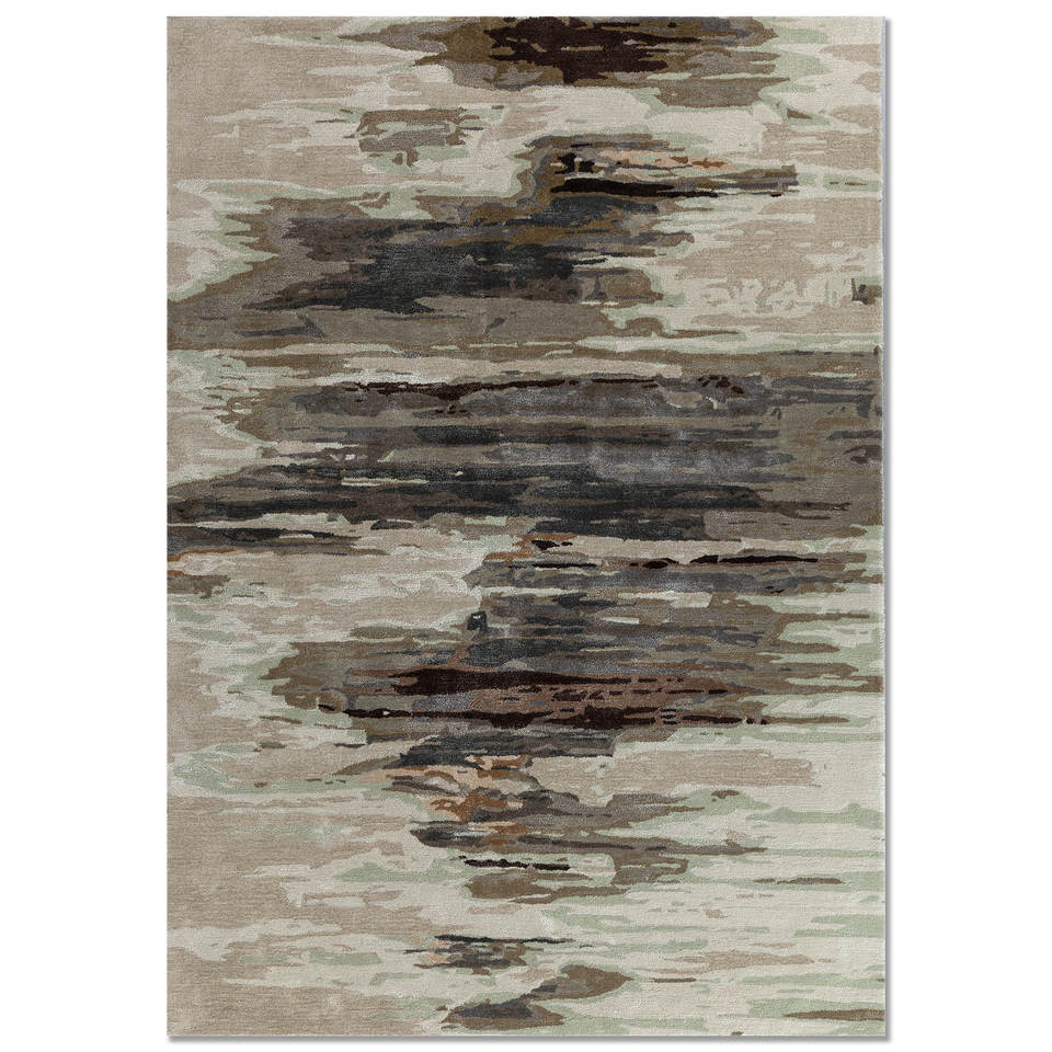 พรมขนสัตว์ผสมวิสโคสทอมือลายกราฟิกทรงสี่เหลี่ยมผืนผ้า รุ่น TNQ-4305 ยี่ห้อ Genesis Green สำหรับตกแต่งบ้านและทางเดิน พรมขนฟู ZA Jaipur Rugs