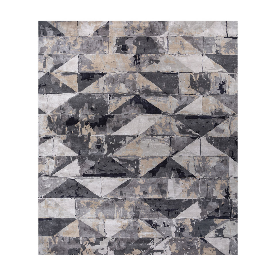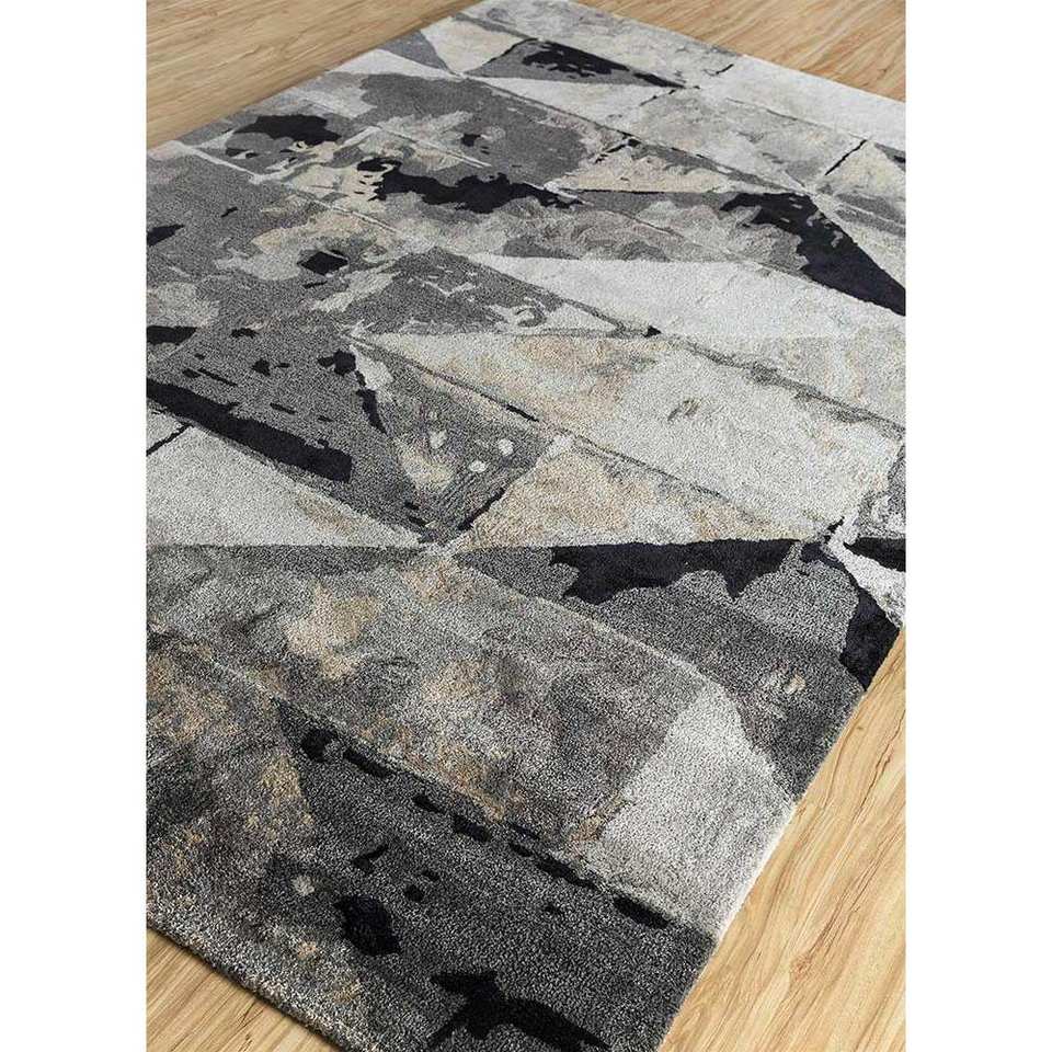 พรมขนสัตว์และวิสโคสทอมือลายเรขาคณิตสีเทาและดำ รุ่น Genesis สำหรับใช้ในบ้าน-Taq-4310 (Md)
