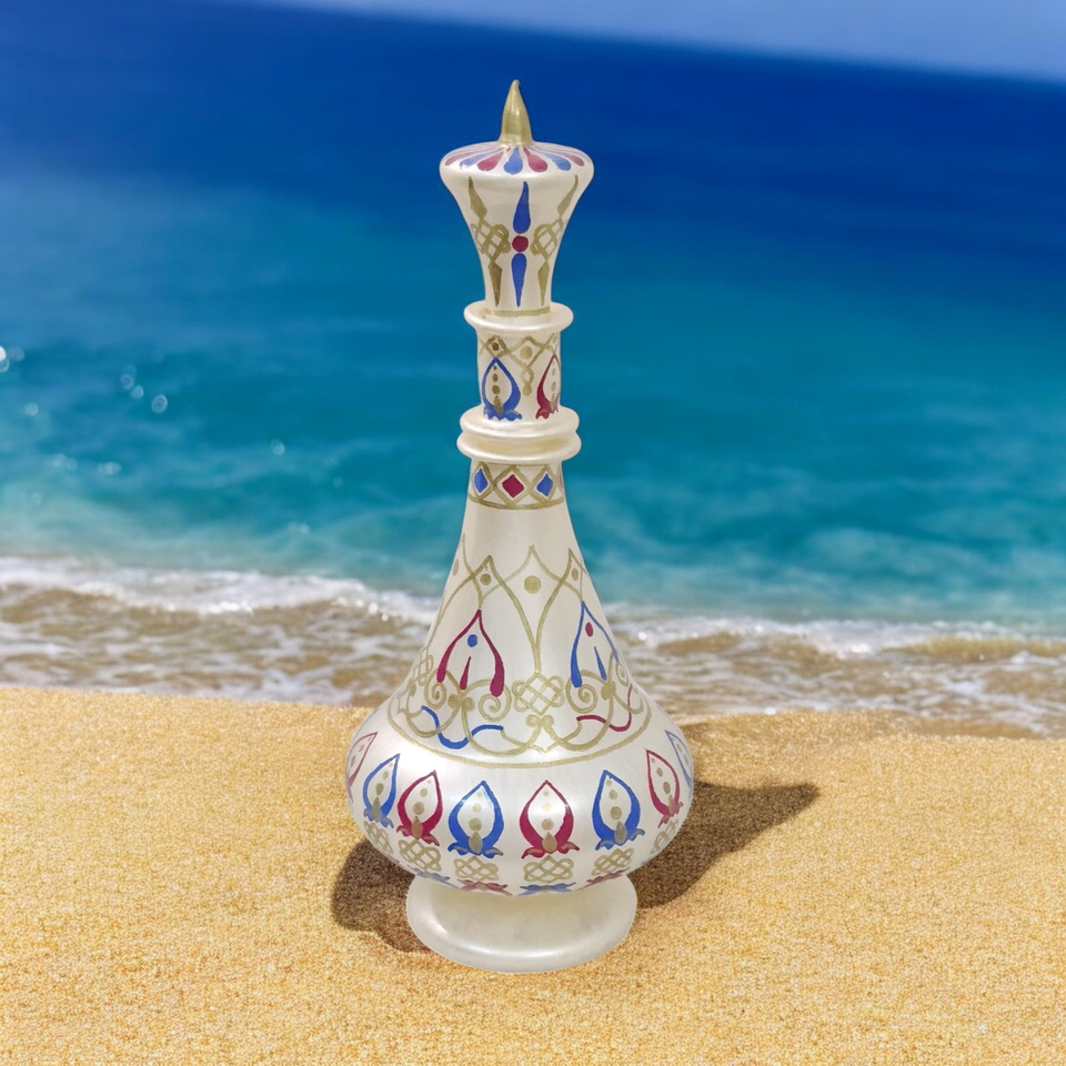 ขวดแก้วเป่ามือลายเพ้นท์มือ Genie LJ116 ลาย Ivory Dream พร้อมจุกปิดผนึก ผลิตในอียิปต์ เหมาะสำหรับเป็นของขวัญและงานฝีมือ