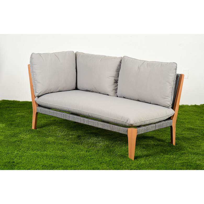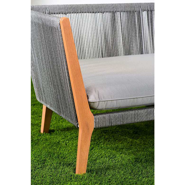 ชุดโซฟาสำหรับระเบียง ทำจากไม้สักแท้และเชือกสีเทาถัก