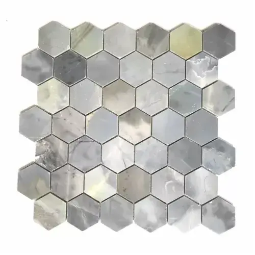 Genoa Blue 2\" Hexagon Polished Marble Mosaic Wall and Floor Tile Backsplash for Bath and Kitchen Renovations