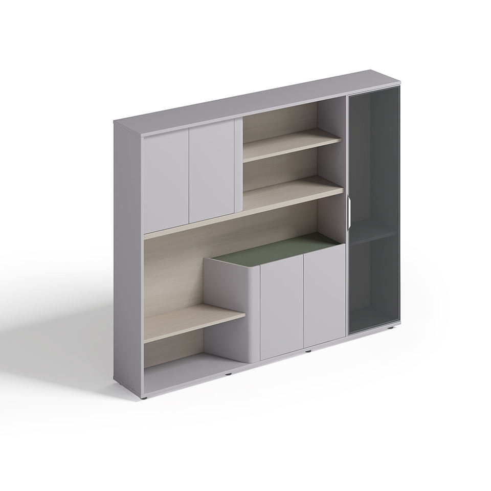 ตู้เก็บเอกสารสำนักงานแบบขยายได้ รุ่นขายดีของ Genova ดีไซน์ทันสมัย บานไม้ ประตูกระจก เหมาะสำหรับโรงแรมและโรงเรียน