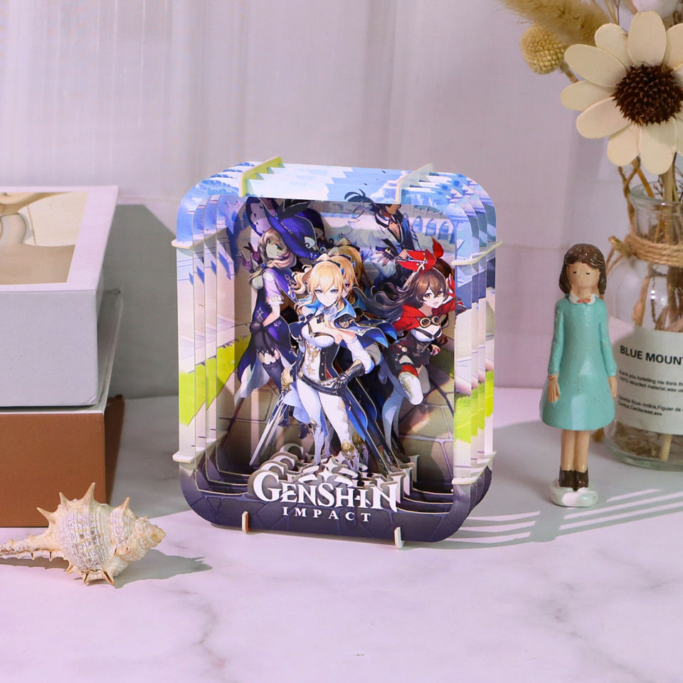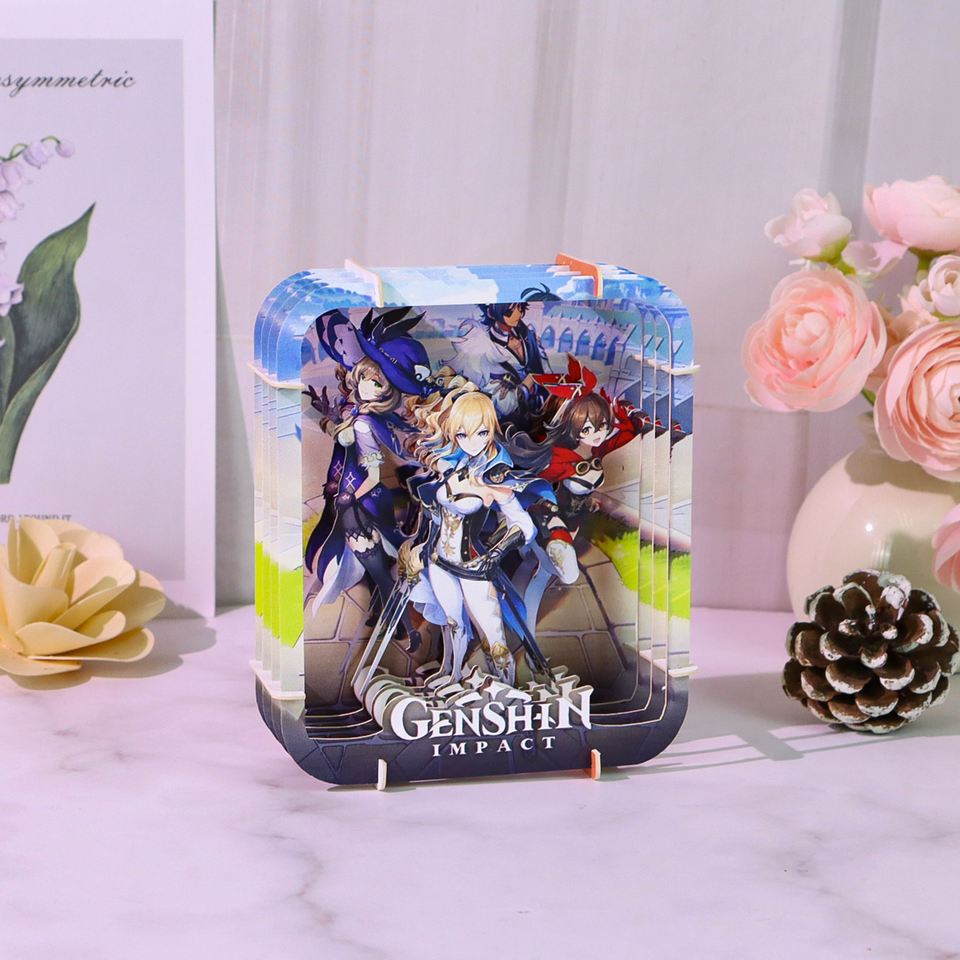 Genshin Impact Character 4 Layers Laser Cut Cardboard Puzzle for Desktop Decoration and Collectible Display