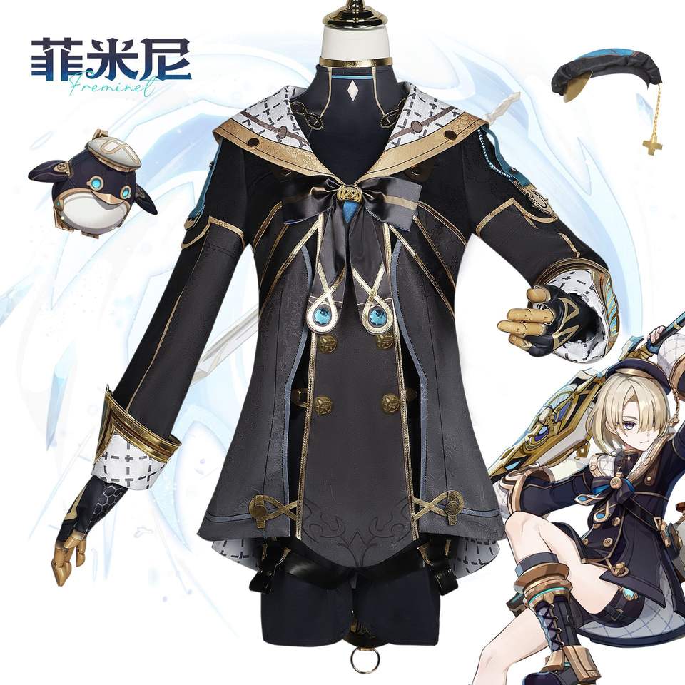 Genshin impact freminet เครื่องแต่งกายคอสเพลย์รองเท้าใส่เล่นเกมอุปกรณ์เสริมสำหรับนักดำน้ำ lyney lynette เครื่องแต่งกายฮาโลวีนของผู้หญิง