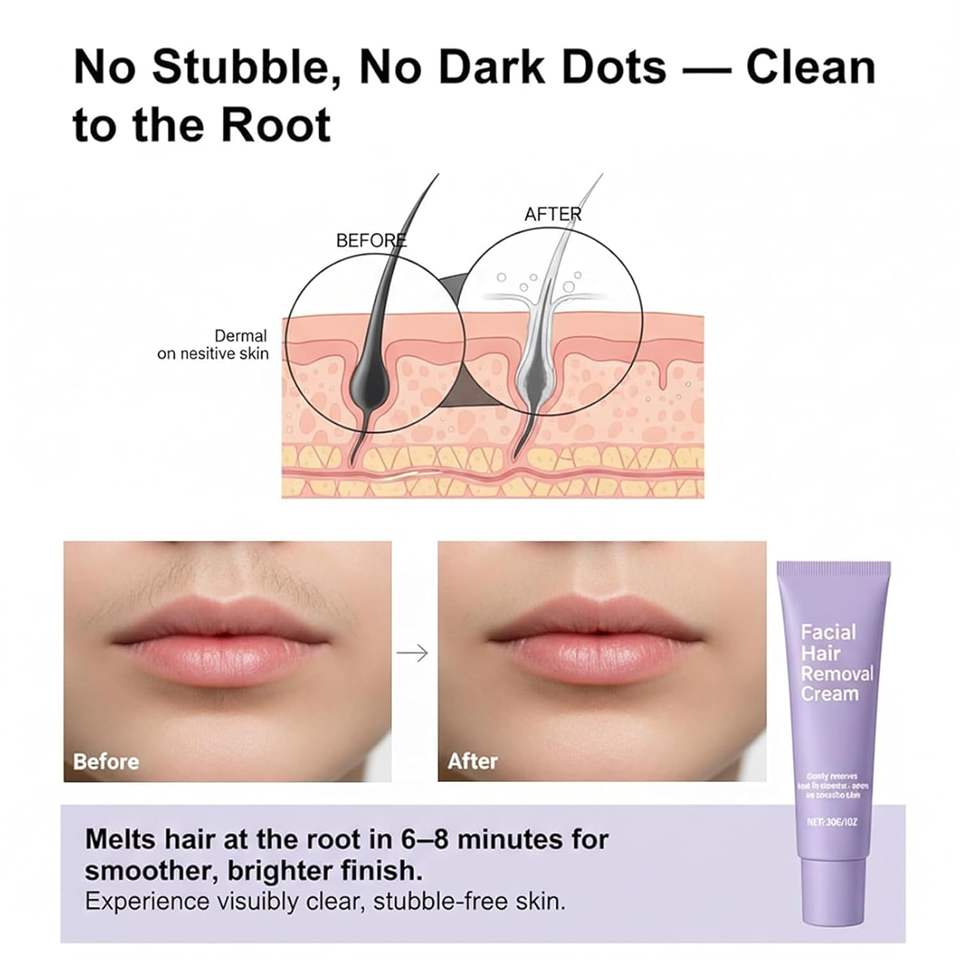 ครีมกำจัดขนสูตรอ่อนโยน ไร้กลิ่น สำหรับผู้หญิง บริเวณริมฝีปากบน คาง บิกินี่ รักแร้ และใบหน้า เหมาะสำหรับผิวแพ้ง่าย