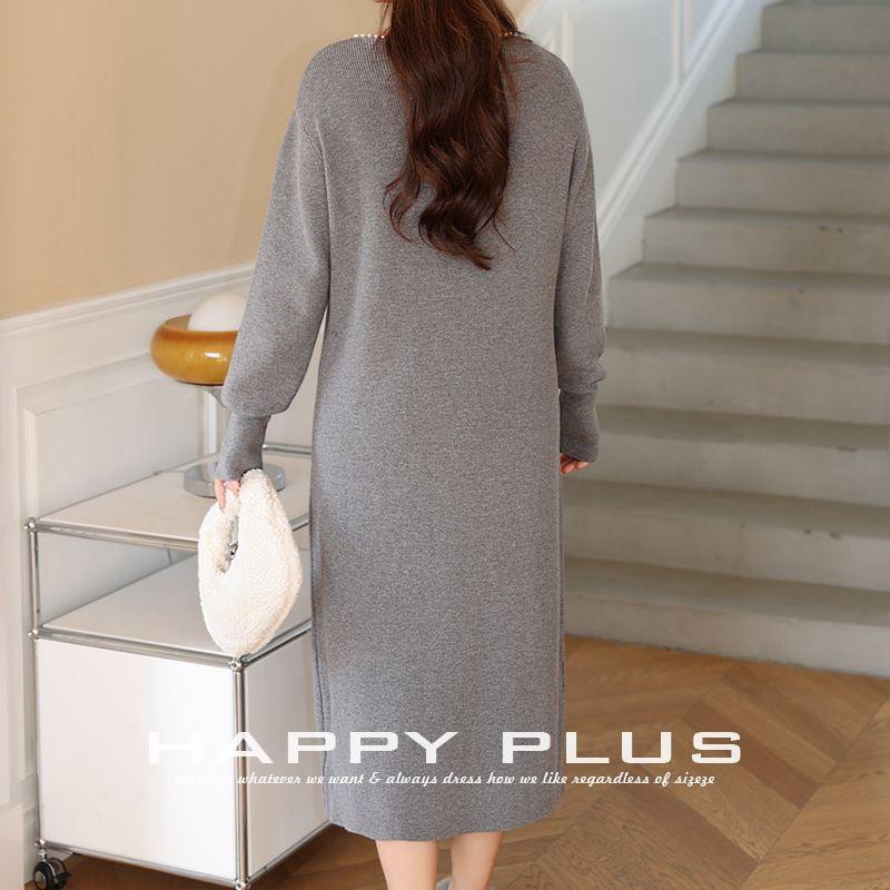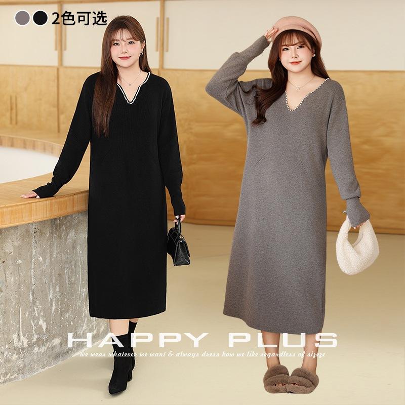 เดรสไหมพรมคอวีสีพื้น แขนยาว ทรงหลวม ไซส์ใหญ่ สีดำ สีเทา สำหรับผู้หญิง เหมาะสำหรับใส่ไปทำงาน
