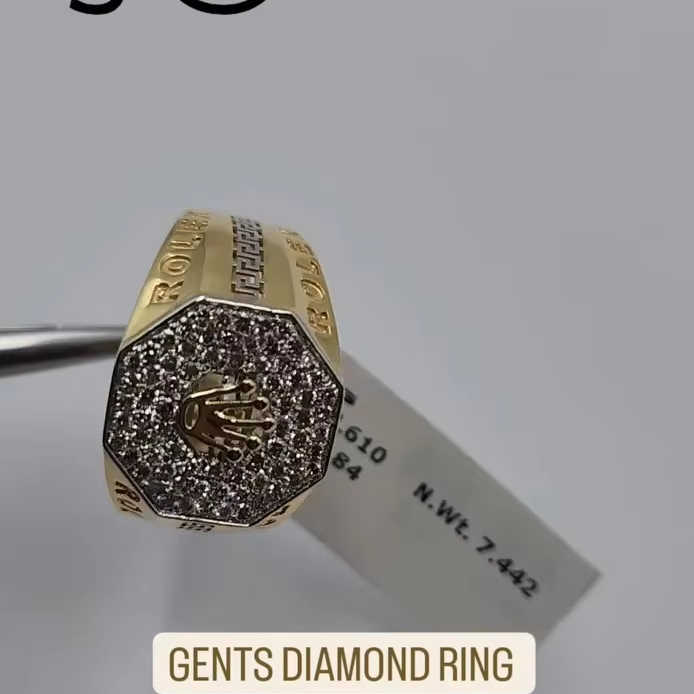 แหวนเพชรสีเหลืองทองของสุภาพบุรุษพร้อมเพชรที่ปลูกในห้องแล็บแหวนเพชรทำจากทองหรูหราสำหรับผู้ชาย