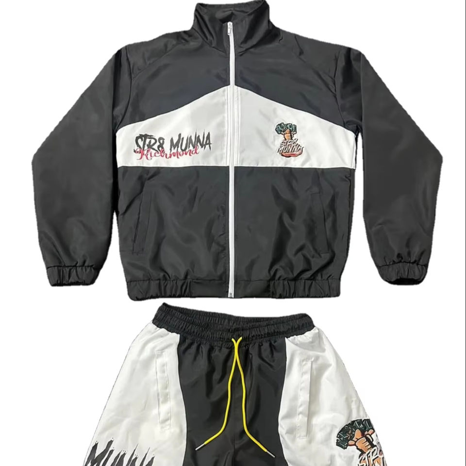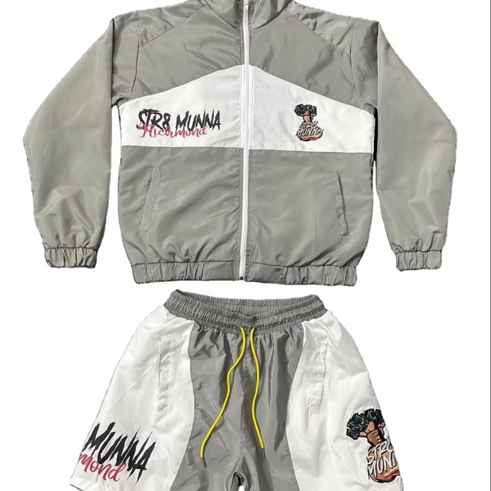 ชุดวอร์มผู้ชาย แจ็คเก็ตกันลม ผ้าโพลีเอสเตอร์/คอตตอน ชุดกางเกงขาสั้น ชุดออกกำลังกาย กันน้ำ ซิป ปรับเอวได้ รับผลิตตามแบบ (OEM) พิมพ์ลายลำลอง