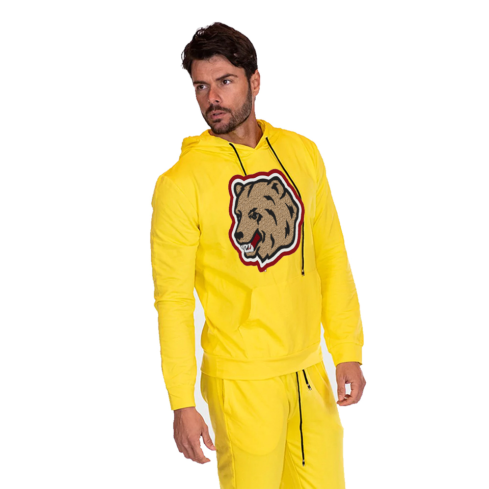 ชุดวอร์ม chenille สำหรับสุภาพบุรุษชุดวอร์มสีเหลืองสำหรับฤดูหนาว