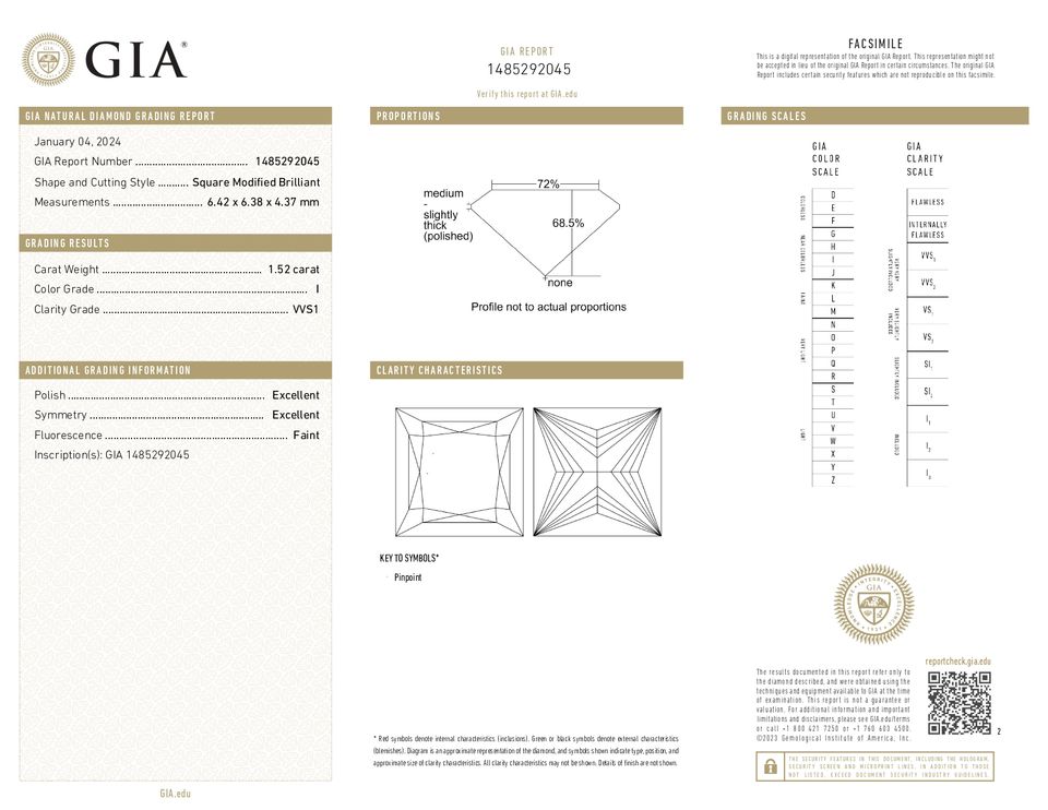 ของแท้1.52กะรัตเจ้าหญิงสี I ตัด VVS1ชัดเจนหลวมเพชรสีขาวธรรมชาติเครื่องประดับที่ได้รับการรับรองจากอินเดีย