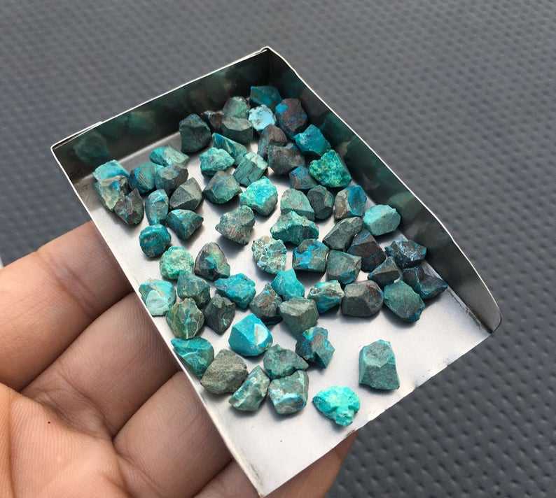 พลอยคริสโซโคลลาธรรมชาติแท้ขนาด8มม. ตัดด้วยมือหยาบสำหรับทำเครื่องประดับขายส่ง