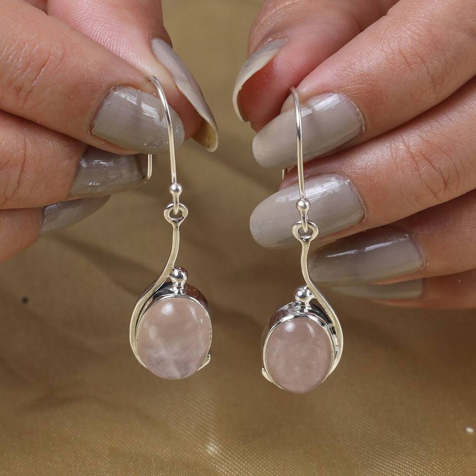 ชื่อผลิตภัณฑ์:ต่างหูเงินพลอยควอตซ์รูปกุหลาบธรรมชาติ