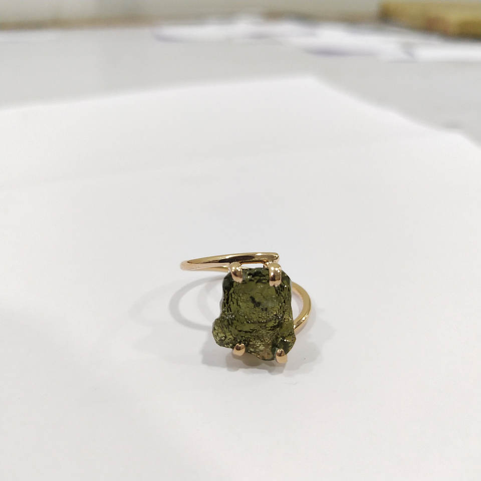 แหวนอัญมณี Moldavite แท้ทำด้วยมือของขวัญสวยงามสำหรับการหมั้นของขวัญครบรอบปีของเธอ