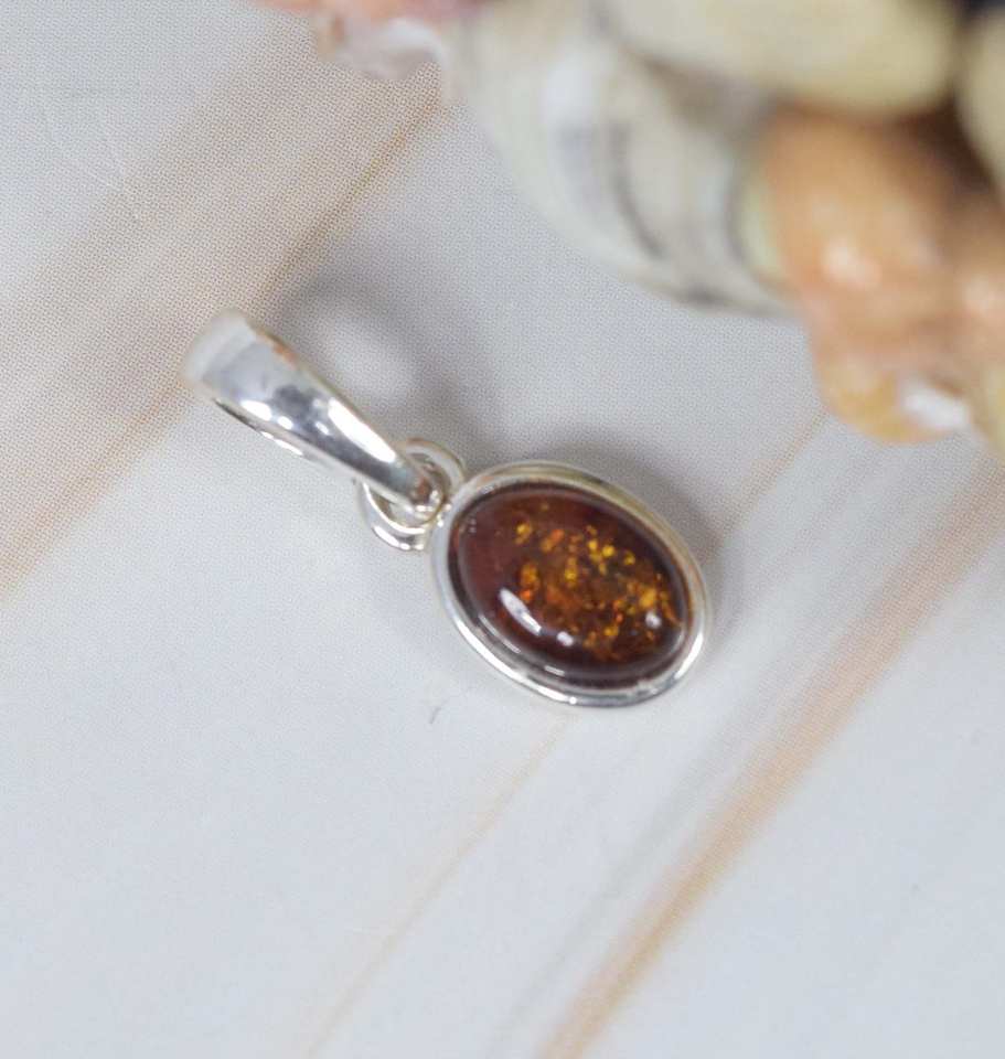 จี้อำพันรูปวงรีแท้925แข็งสีเงินสเตอร์ลิงประดับแบบเรียบง่ายจี้สีเหลืองอำพันสำหรับผู้หญิง