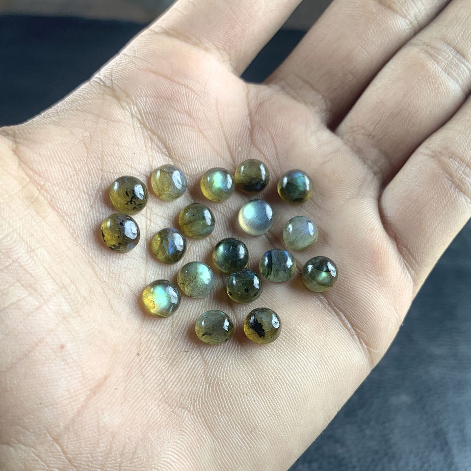 พลอยคาโบชองรูปลาบราดอไรต์เพลิงสีฟ้าแท้อัญมณีหลวมทรงกลมขนาด7มม. สำหรับทำเครื่องประดับแบบทำมือขายส่งเป็นจำนวนมาก