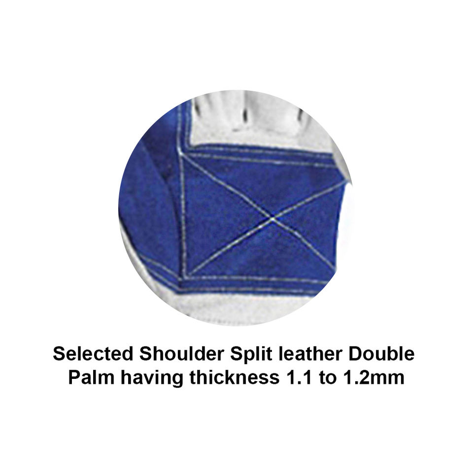 ถุงมือทำงานหนังแยกสีฟ้าและสีเหลืองของแท้มีซับในสีดำหลายข้อมือคู่สำหรับป้องกันแรงงาน PPE