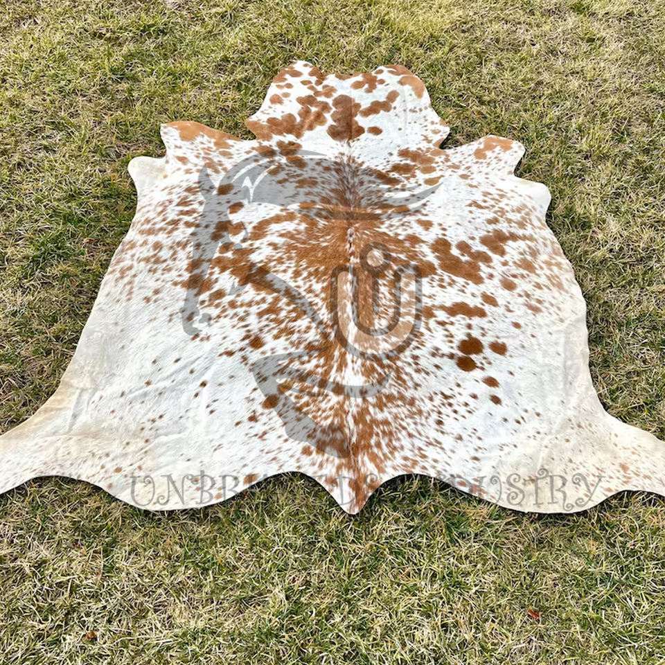 พรมหนังวัวลายขนสัตว์บราซิลแท้ สีน้ำตาลขาว สำหรับปูพื้นกลางแจ้ง ปิกนิก กันลื่น