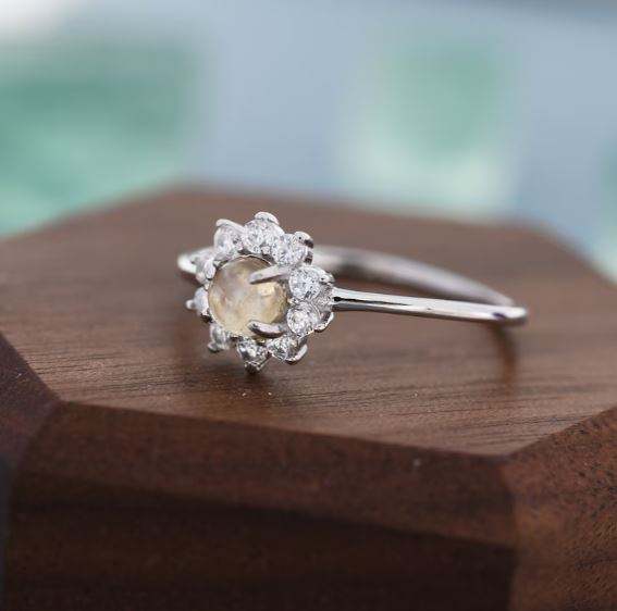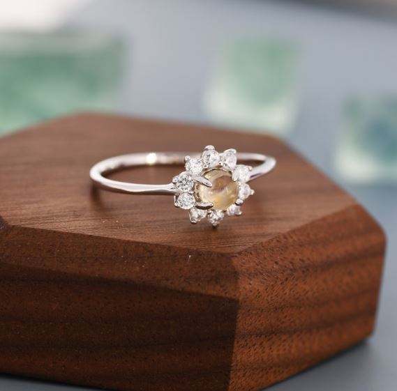 แหวนซิทรินแท้ทรงรัศมีประดับเงินสเตอร์ลิง แหวนพลอยซิทรินธรรมชาติ แหวนคริสตัลรูปดอกไม้