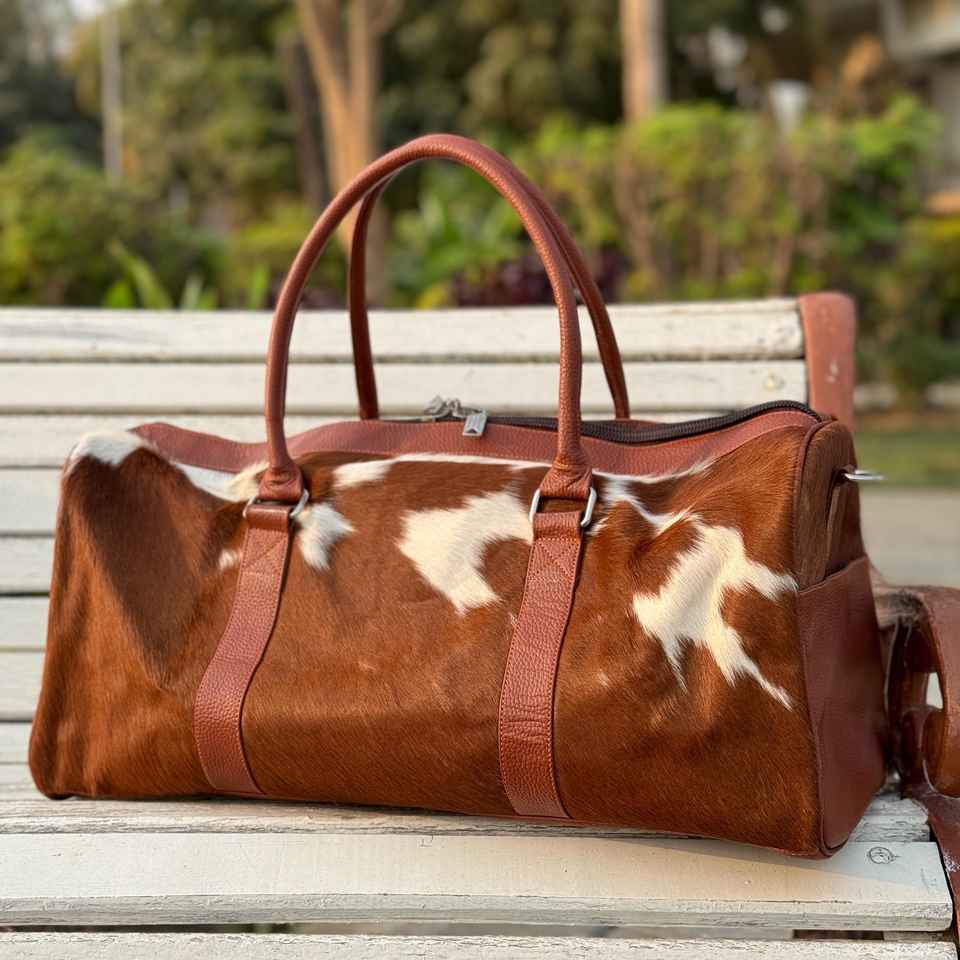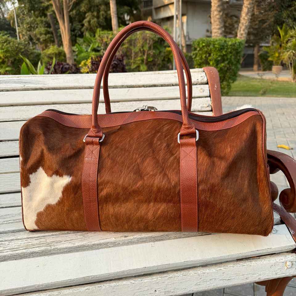 Genuine Leather Hair On Duffle Bag