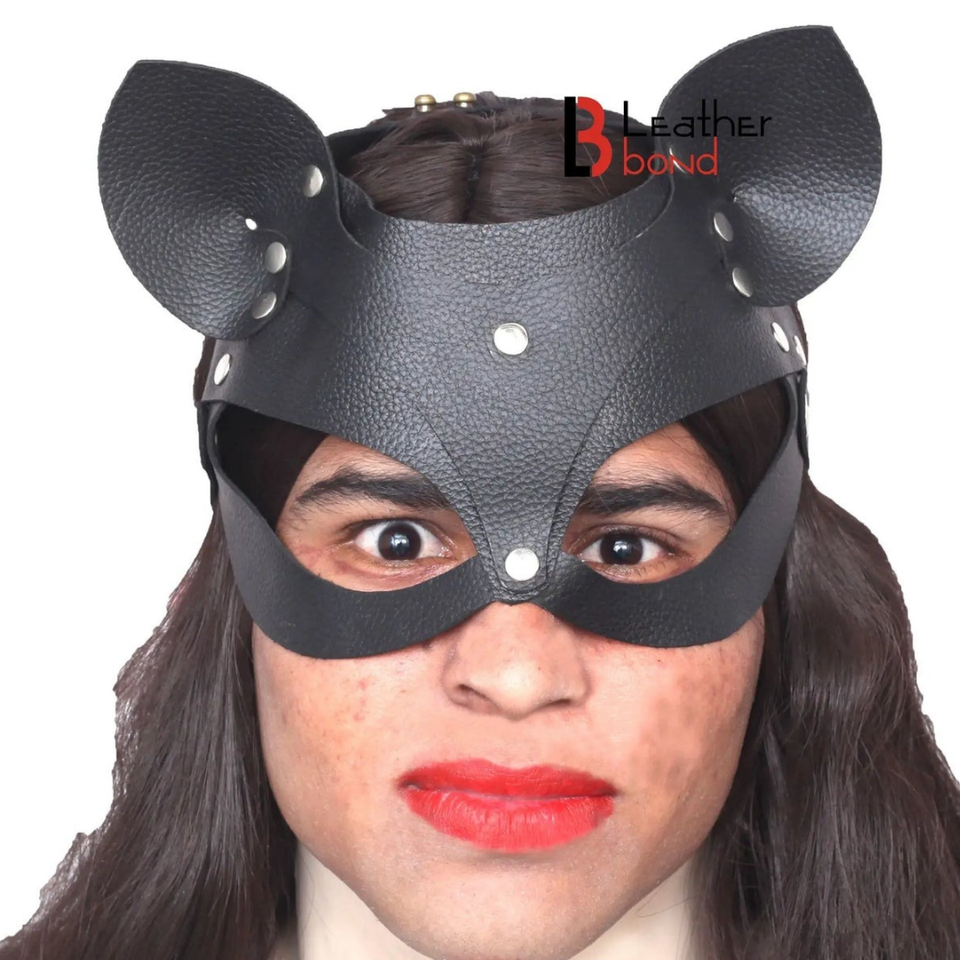 หน้ากากหนังวัวแท้สำหรับสวมใส่เล่นบทบาท BDSM แบบเปิดตา