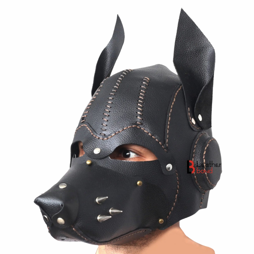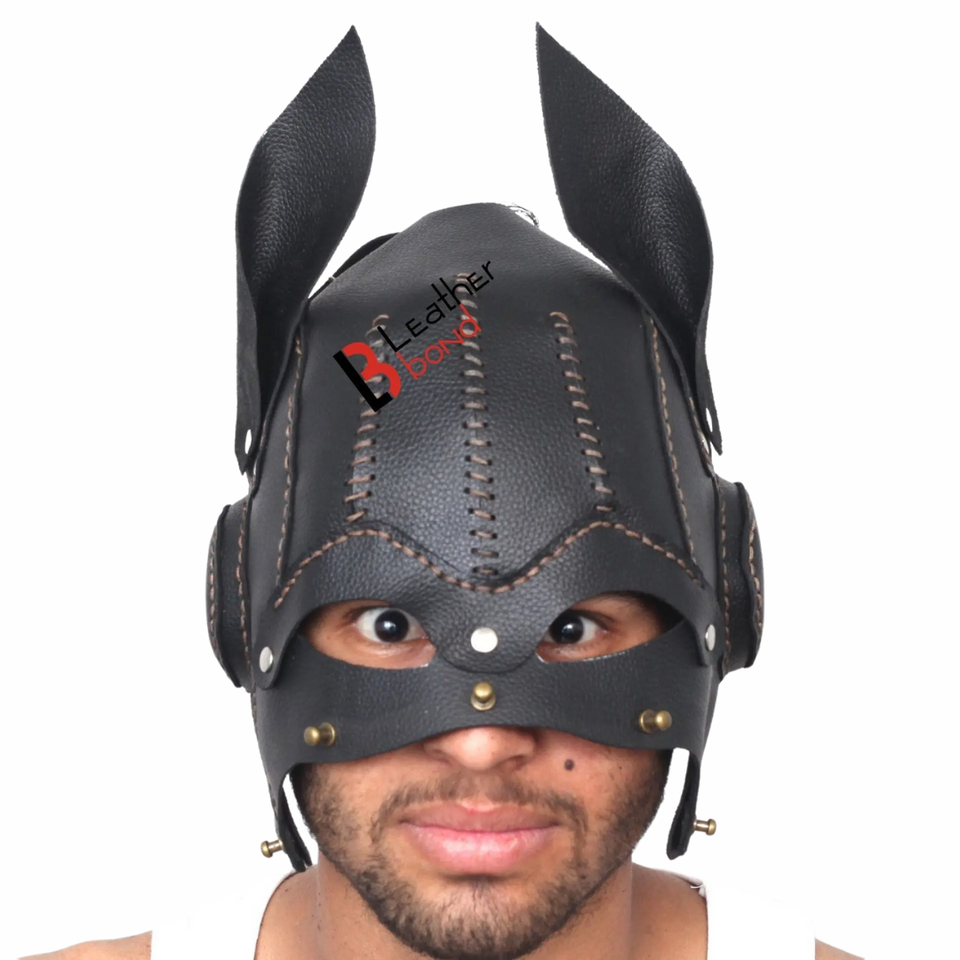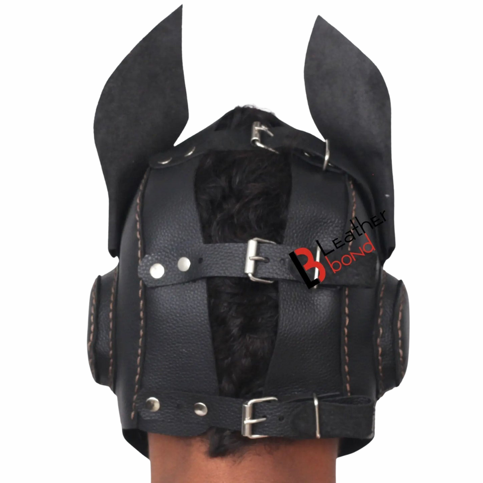 หน้ากากสุนัขหนังวัวแท้แบบเต็มหน้าพร้อมสายรัดด้านหลังปรับได้