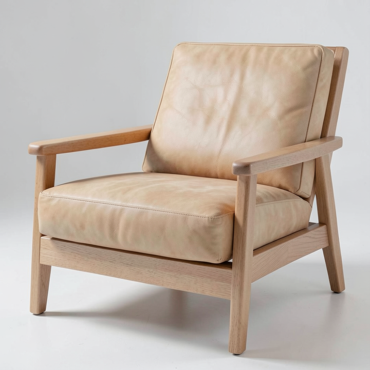 เก้าอี้พักผ่อนหนังวัวแท้ โครงไม้เนื้อแข็งธรรมชาติ เก้าอี้นวมทันสมัยสำหรับห้องนั่งเล่น โรงแรม วิลล่า เฟอร์นิเจอร์ตกแต่งภายใน