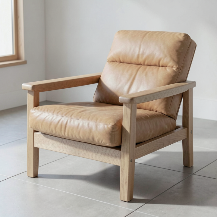 Genuine Cowhide Leather Lounge Chair with Solid Wood Frame Modern Upholstered Armchair Real Cow Leather Seating for Living Room