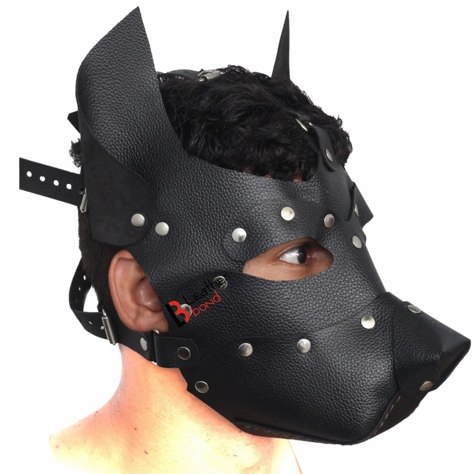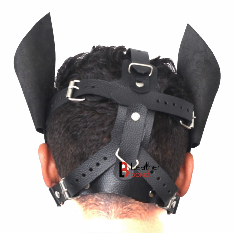 หน้ากากหนังวัวแท้สำหรับสุนัขพร้อมรายละเอียดส่วนหูสำหรับเล่นกับสัตว์เลี้ยง