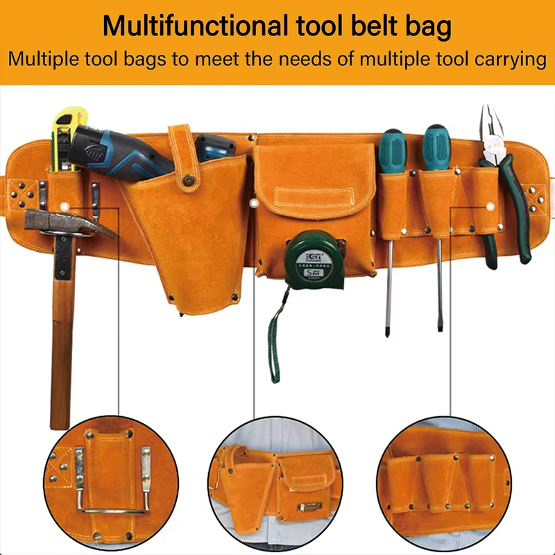 กระเป๋าคาดเอวหนังวัวแท้สำหรับช่างไม้ ช่างไฟฟ้า ช่างติดตั้ง ช่างซ่อมแซม ทนทานต่อการสึกหรอ