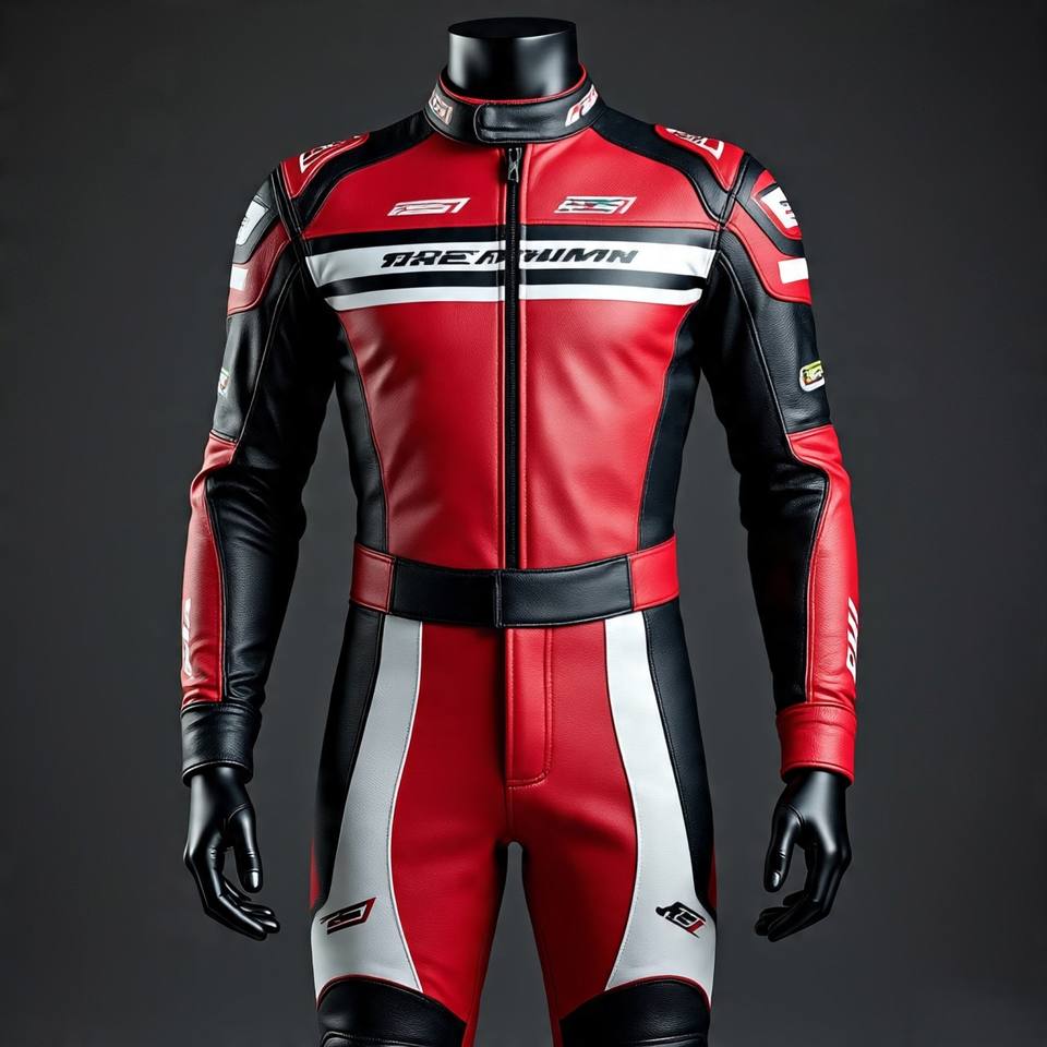 ชุดแข่งรถหนังวัวแท้ CE ARMOR | ปรับแต่งได้อย่างเต็มที่โดย malik Raza | แขนโค้งก่อน | แผงตะเข็บสามชั้นระบายอากาศได้